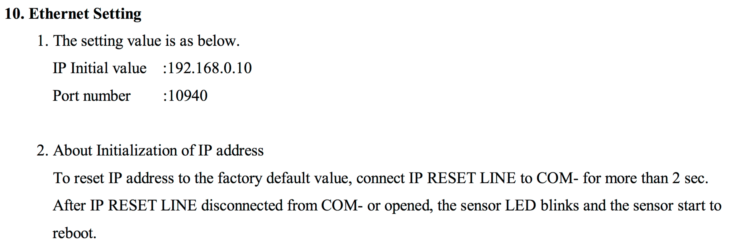 A few customers have mentioned that, when trying to reset the Hokuyo UST-10LX or UST-20LX sensors to the factory default IP address, the reset procedure found in the product specification may not reset the IP address properly.