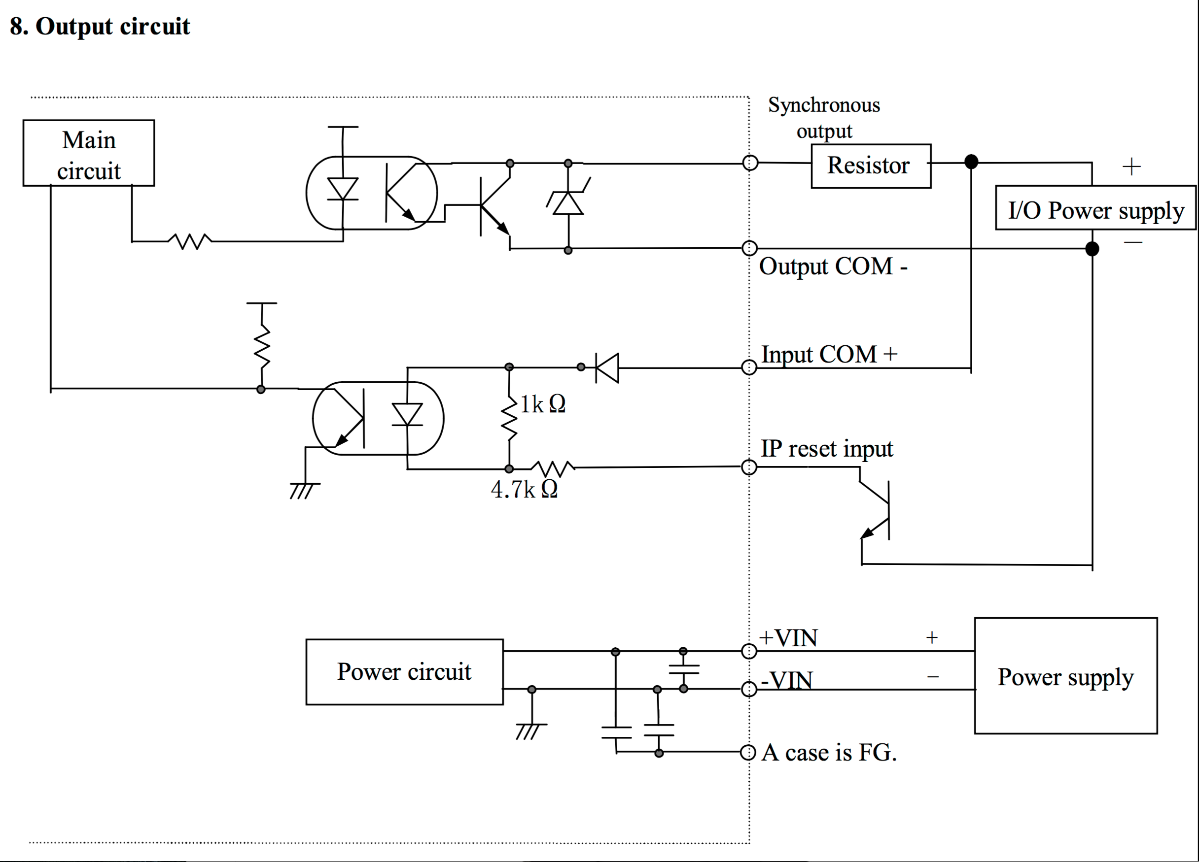 In the event that you have not implemented the output circuit from Section 8, make sure that you have the Input COM+ (Red) connected to the I/O Power supply (you can use the same 12V power supply that already connected to the unit as the I/O Power supply) and the Output COM– (Gray) connected to the ground of the I/O Power supply as shown. You do not need a transistor at the IP Reset Input. A physical contact of the IP Reset Input to the Output COM- is equivalent to the ON state of this transistor.