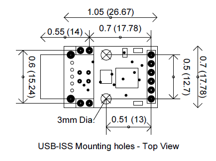 The USB-ISS can operate from 3.3V or 5V. With the LEDs on, it takes approximately 20mA. From a standard 100mA USB port, when operating at 5V, the USB-ISS module can supply up to 80mA to external devices. When the jumper is removed, a 3.3V regulator supplies the power. This regulator is capable of 50mA, so when running at 3.3V approximately 30mA is available to external devices. Do not apply your own voltage to this pin.