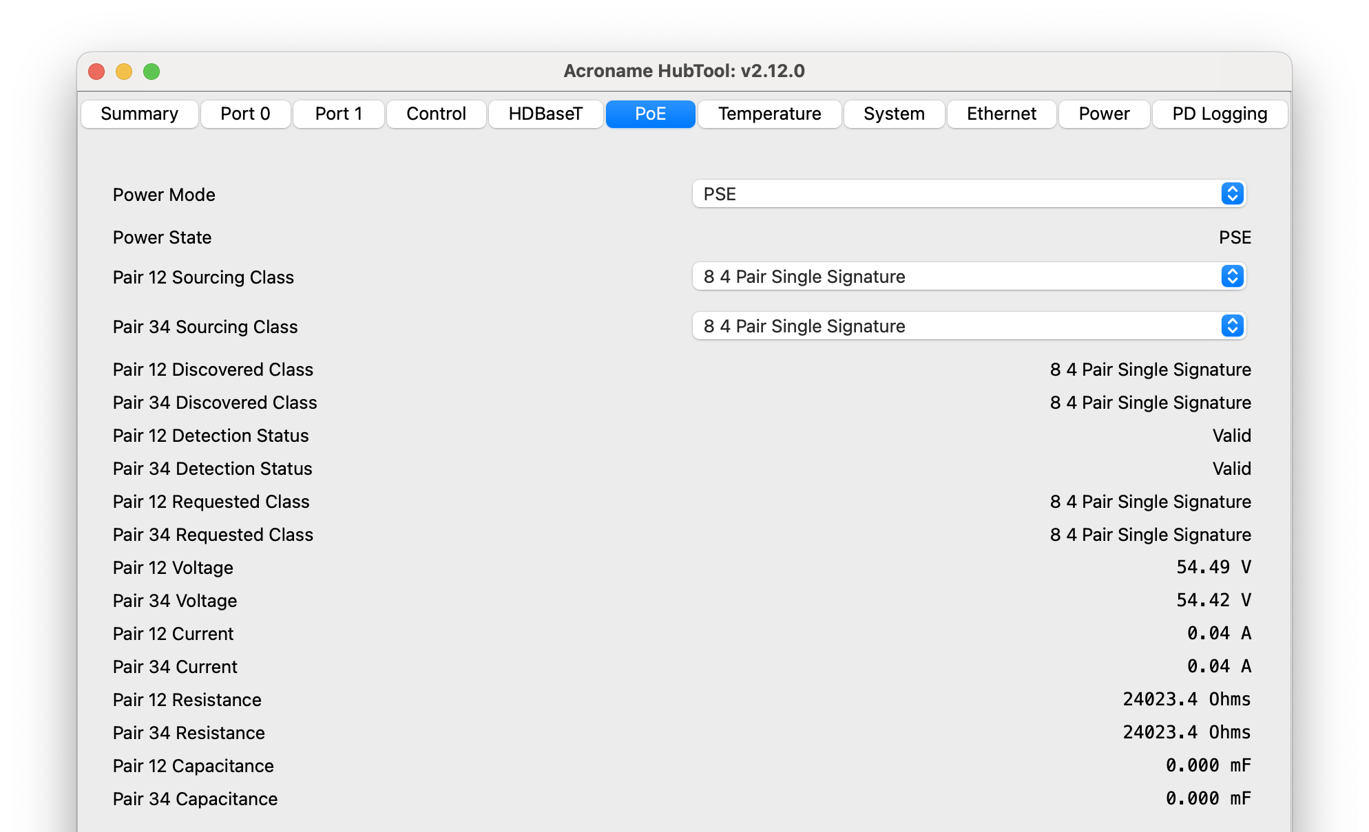 Power State — reports the current operating mode (PSE, PD, or Off)