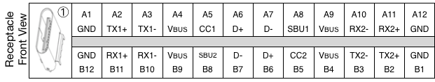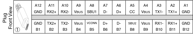 Figure 1: USB-C plug and receptacle pin-out definition.