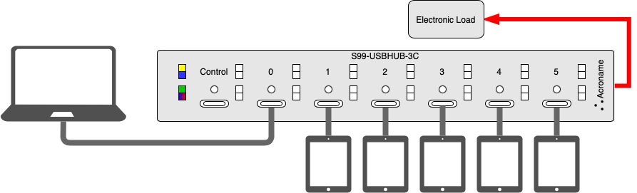 We’ve built on the up/downstream compatibility of our ports (0-5) to not just allow power to the hub itself, but also to source through the USB-C power rail connections on the back of the USBHub3 to an external load/sink.